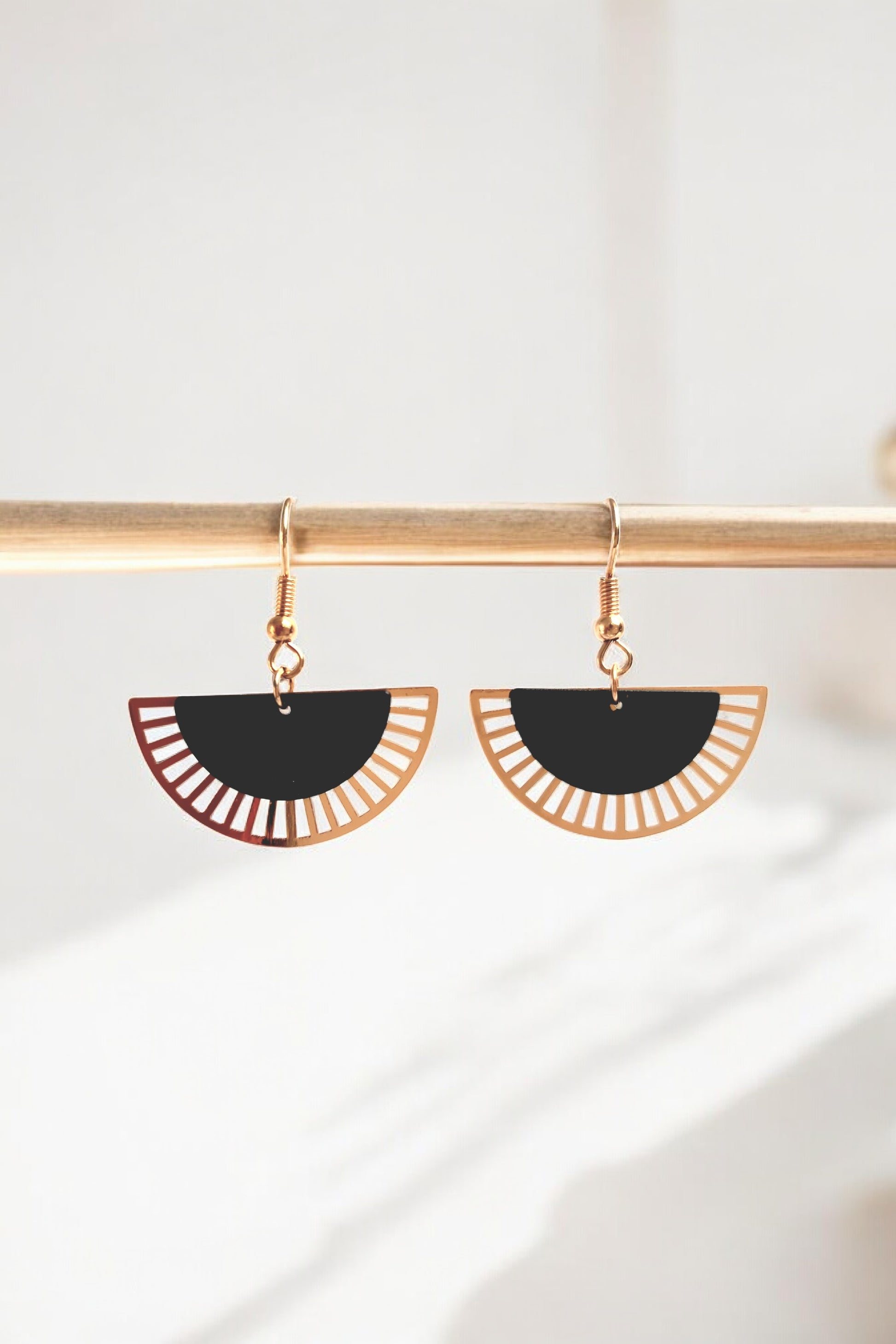 Boucles d'oreilles laiton doré demi-lunes ajourées clair obscur
