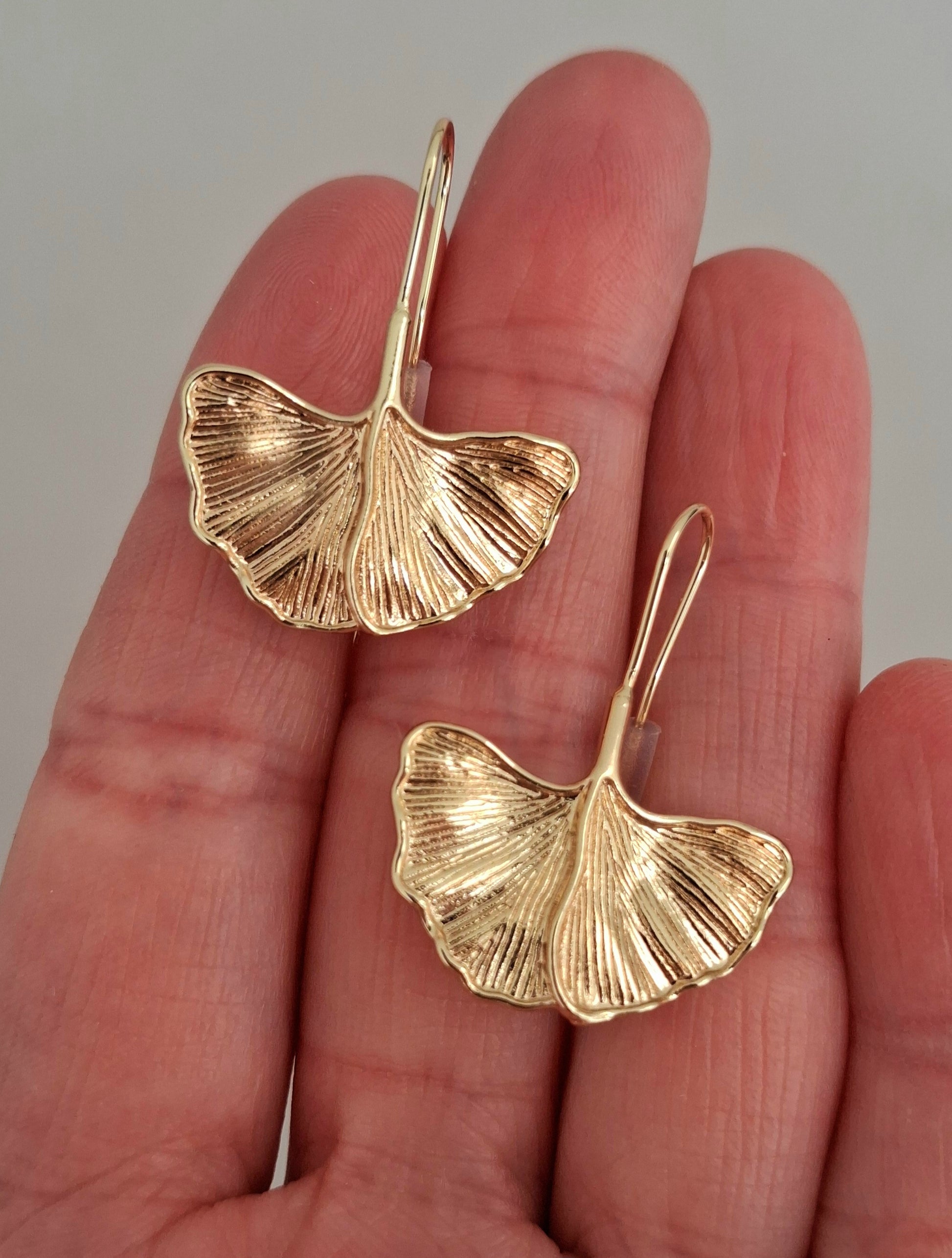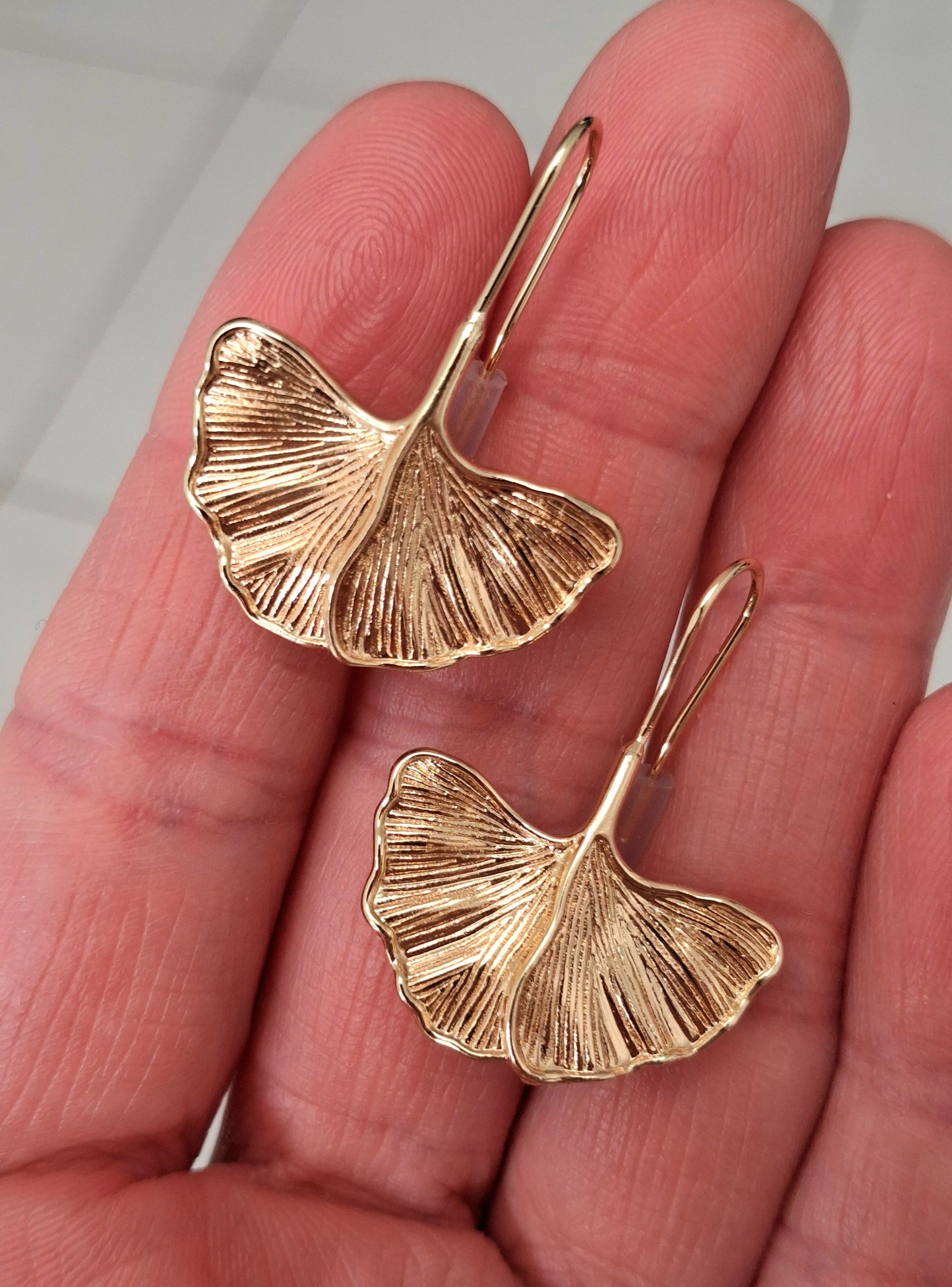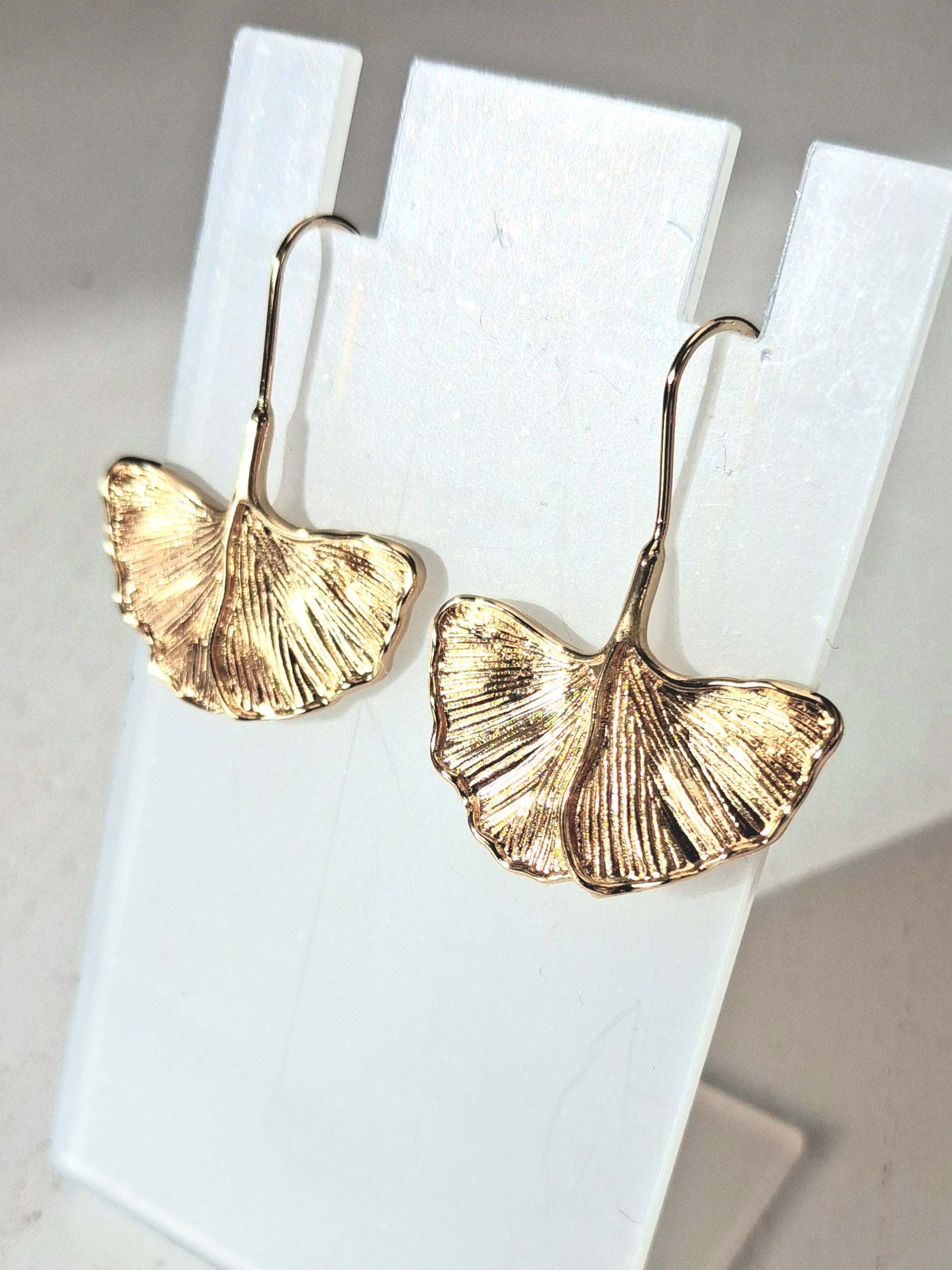 Dormeuses dorées à l'or fin 14K 1micron feuilles de ginko biloba.